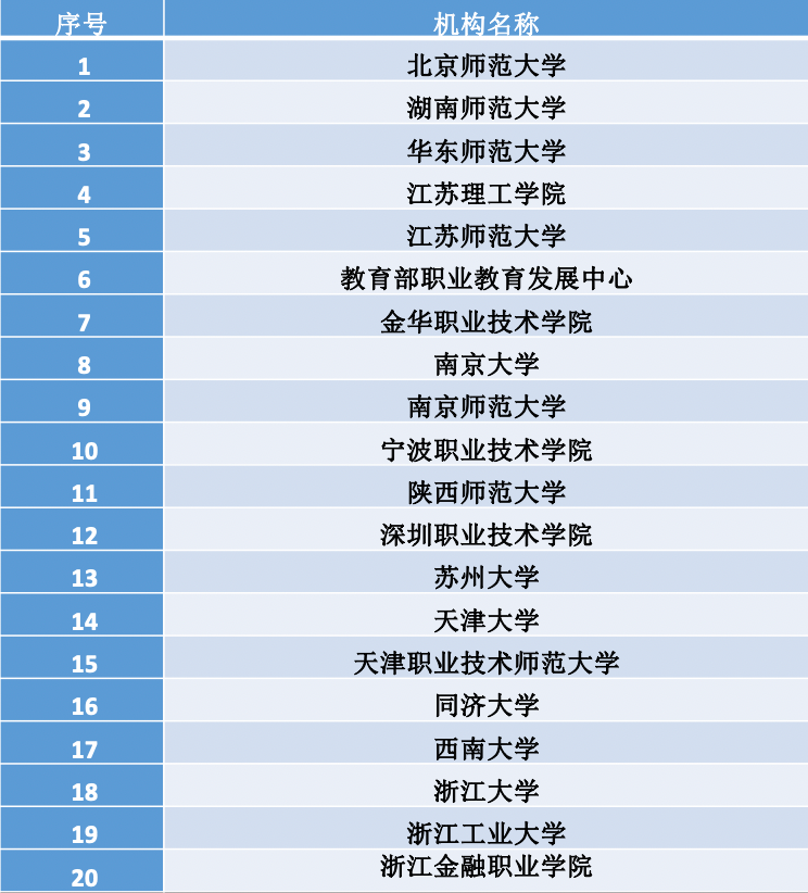 2022年度职业教育高影响力机构名录基于2022年复印报刊资料职业教育领域年度全文转载和索引的4438篇学术论文的全样本数据,通过定量与定性研究相结合的方式得出。此次入选年度职业教育高影响力机构名录的共有20家,高职院校仅4家。
